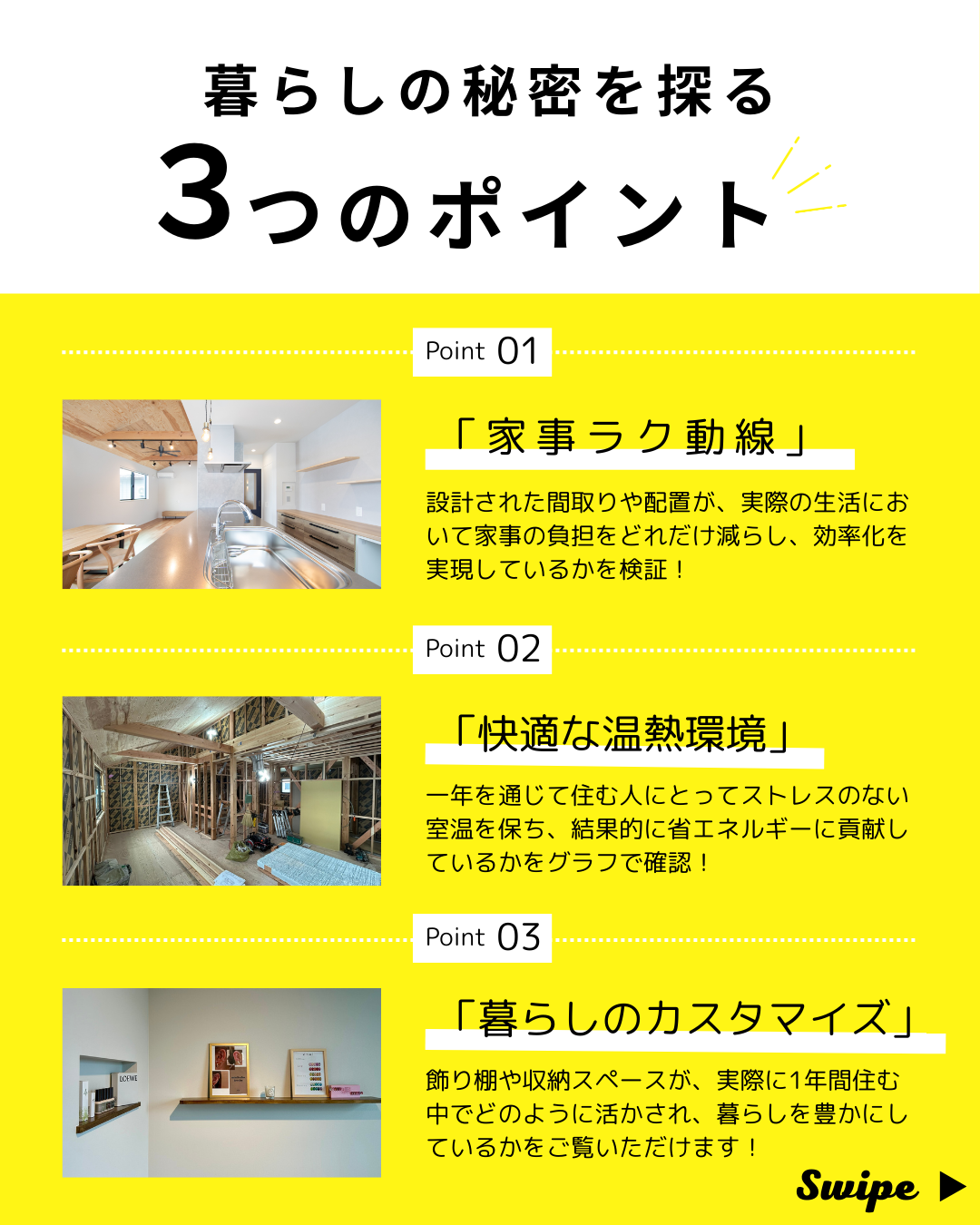 新築完成見学会では見えてこない「リアルな住み心地」を見たり感じたりしていただける機会です。